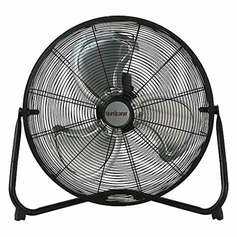 The Hurricane® Pro 20 Inch High Velocity Metal Floor Fan is a far-reaching fan that takes up a small footprint. This high-speed fan is ideal for your homes, greenhouses, garages, gyms, workshops and other commercial areas that require a reliable and steady flow of air. As an industry leader in industrial fans and quality construction, these heavy-duty Hurricane Fans have a rugged all-metal build, with heavy-duty aluminum fan blades and a black powder-coated finish. It also features 3 speed settings and an adjustable tilt to allow you to customize the combination of speed and airflow for ideal ventilation in any space. Comes with an easily assembled tube base and floor-gripping rubber feet, this fan is designed to securely remain upright. The fan’s grill housing even has a built-in handle so it’s easy to move around. Runs at 1450 RPM with an airflow of 5300 CFM on high. It has a 6 ft 120 V power cord. ETL listed.